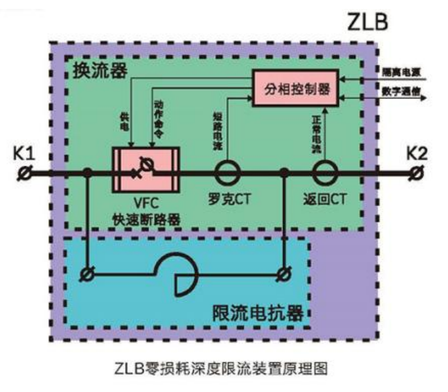 随着各类型用电企业的发展壮大(dà),用电(diàn)负荷(hé)大举攀升,各企业电网系统的短路电流已经接近或达到负载侧(cè)真空断路器的最(zuì)大使用(yòng)极限,企业面(miàn)临真空断路器开断容量不足,变压器抗短路电流冲击(jī)能力不足(zú)等问题,已经严重威助了企业的安全(quán)运行。我公司根据市(shì)场发展需求,开发出零损耗深度限流装置(简称 ZLB),其结构由 VFC 快速涡流驱动开关与深度限流电抗器并联组成,具有运行时无损(sǔn)耗、无压降,短路时限流能力强且可自动复位(wèi)等特点。