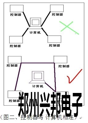 控製器GND 485- 485+分別對應連接485轉換器GND TD(A) TD(B),通訊線路采用串聯掛接式連接,請勿采用星型連接或者局(jú)部星型連接(如圖二)。如果線路過長和設備過多,請在最(zuì)後一台設備上增加終端電阻(有跳線加載(zǎi))總線最多可掛接128台控製器。