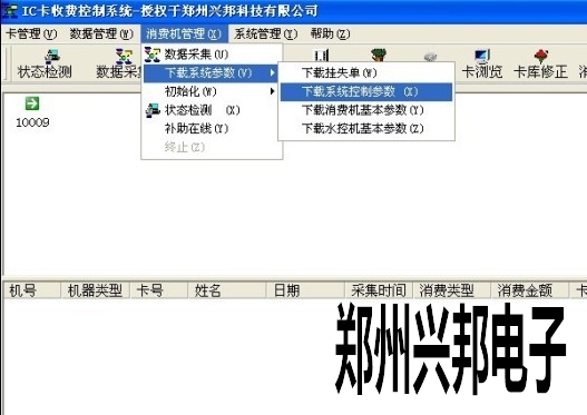 具體(tǐ)操作步驟為:將消費(fèi)機連接到通訊(xùn)線上,打開一(yī)卡通係統(tǒng)確(què)認機器通訊正(zhèng)常然後選擇--消費機管理--下載係統參數--下載係(xì)統控(kòng)製(zhì)參數--下載消費機基(jī)本參數或者下載水控機基本參數(shù)(如下圖所示)