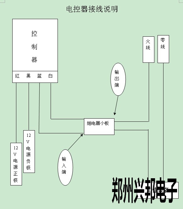 1、繼電器小板接線柱標有12V+的的一(yī)端是輸入端 分別接控(kòng)製器的藍線和白線