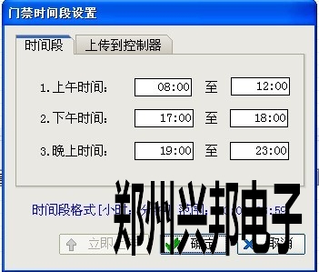 3、設(shè)置好要開門的時間段後點擊‘確(què)定’進行保存(cún),點擊‘上傳(chuán)到控製器’選擇相應控製器點擊‘立即上傳’。
