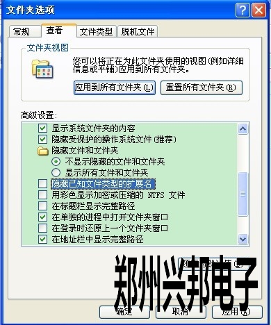 2. 打開我的電腦-->工具-->文件夾選項,把查看中的“隱藏已知文件類(lèi)型(xíng)的擴展名”去掉(diào)。