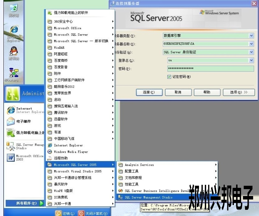 (開始—程序—Microsoft SQL Server 2005-- SQL Server Management Studio,點開(kāi)後(hòu)就可以看到服務器名稱,如下圖所(suǒ)示)