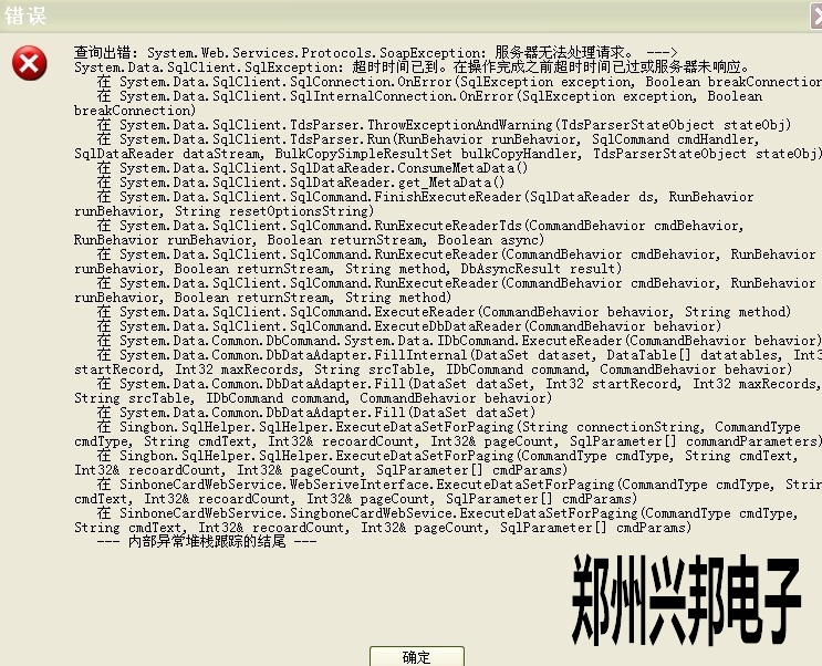 一卡通綜合管理平台在查詢消費記錄表時出現如下的錯誤提示: