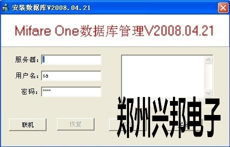 4、先點擊聯機按鈕,右邊消息框中提示連接數據庫成功後,點擊恢複按鈕,當(dāng)數據庫恢(huī)複完畢後,再次打開軟件係統就可以正常登陸了。