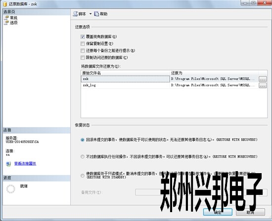 把導入的bak文件(jiàn)勾選上,在指(zhǐ)定了要還原的*.bak文件以後,選項---->設置還(hái)原選項--->覆蓋現有數據庫(選(xuǎn)上),其它默認(rèn)。