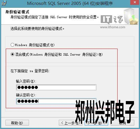 5、選擇混合(hé)模式登陸,並輸入登陸數據庫的密碼