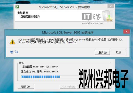 6、當出現Sql Server 2005無法啟動時,這個時候(hòu)就不先(xiān)點擊重試或者取消。