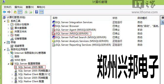 8、當完成SQL Server 2005安裝(zhuāng)後,先不啟動套件(jiàn),而是先強製停止SQL Server的服務項目。(進入計算機管理(lǐ),選擇SQL Server配(pèi)置管理器,禁止SQL Server 2005相(xiàng)應(yīng)的服務項目)