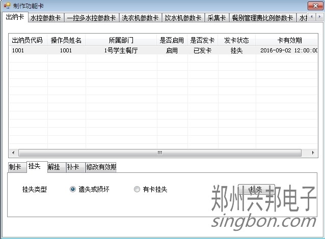 客戶使用的我(wǒ)們的互聯網一卡通食堂售飯機軟件,不小心把出納卡製成員工卡使(shǐ)用了,遇到這種情況,(1)用超級(jí)管理員身份登錄軟件,在軟件的(de)製卡中心-功能(néng)卡製作-出納卡頁麵裏選中之前的出納員信息,選擇掛(guà)失(掛失類型選擇遺失或損壞),點擊右邊的掛失把(bǎ)原來的出納員賬號掛失;
