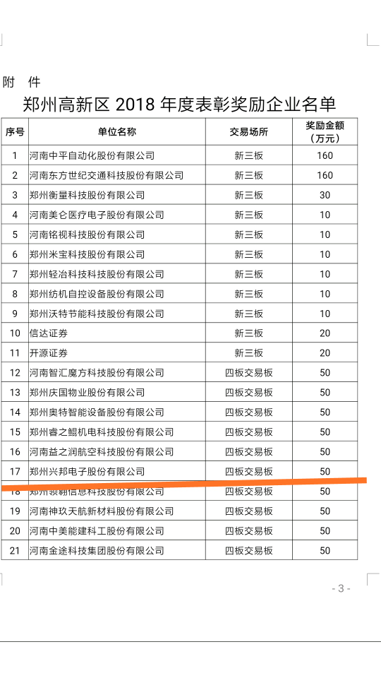 [文章內容簡介]:轉發:鄭州高新技術產業開發區管委會關於表彰鄭(zhèng)州高新區2018年度多層次資本市場企業(yè)的(de)決(jué)定