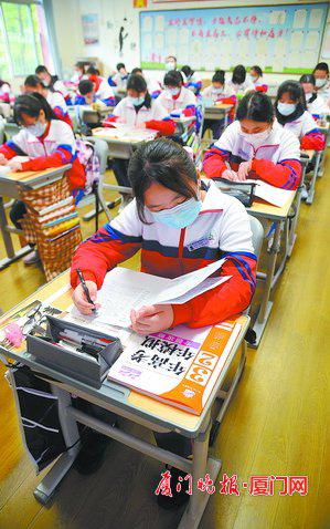 廈(xià)門網訊(廈門晚報記者郭文娟林珊(shān)吳笛圖/劉東華)今天早上,全市近1.6萬名(míng)高三學(xué)生重返課堂。距離高考(kǎo)隻有三個月了,老師勉勵(lì)學子們:“寧(níng)吃(chī)百(bǎi)日苦,不留終生憾!”校園(yuán)裏(lǐ)張貼的紅色標語(yǔ),也為學生(shēng)們加油鼓勁:“努力到無能為力,拚搏到感動自己!”